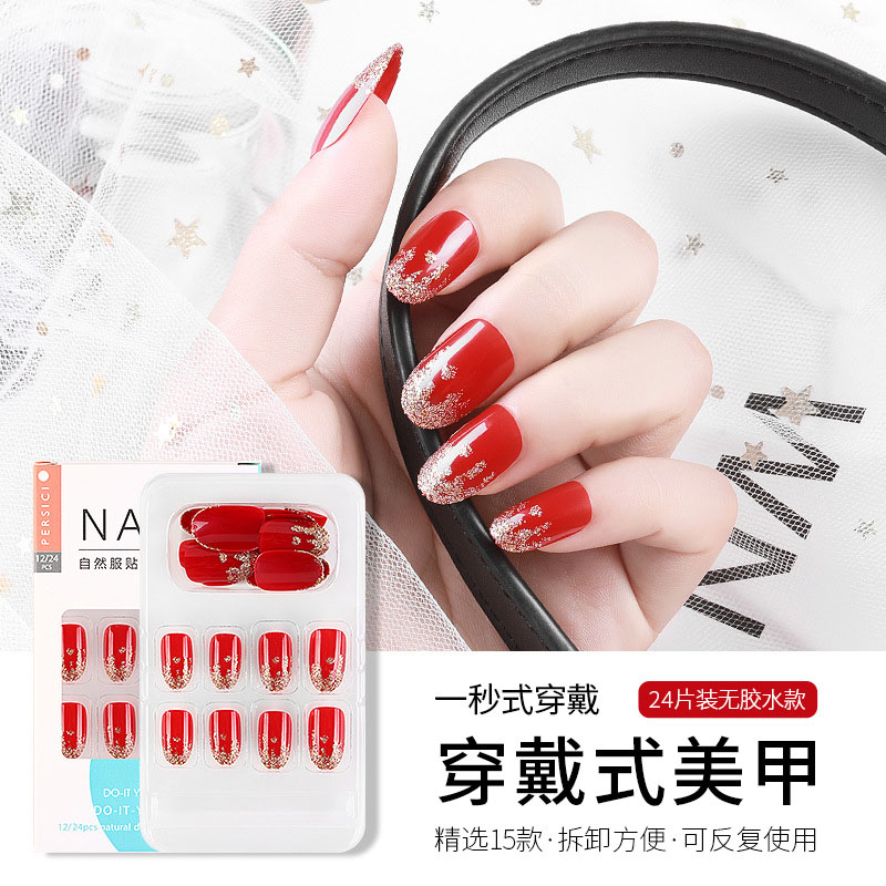 红色系新年款可拆卸假指甲贴片