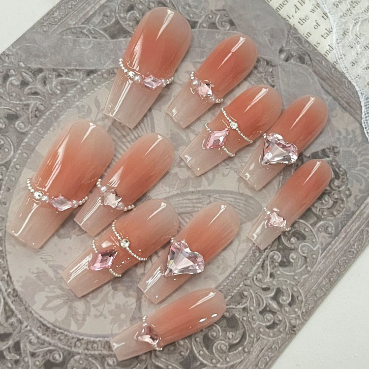 跨境美甲甲片欧美梯形带孔爱心镂空甲片