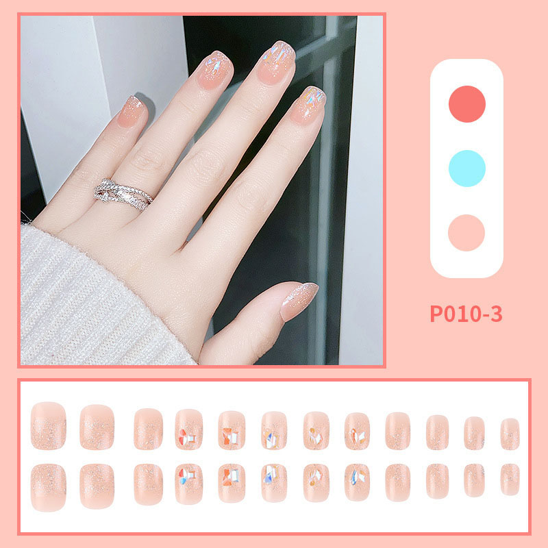 温精灵平底碎钻款彩绘穿戴假指甲贴片