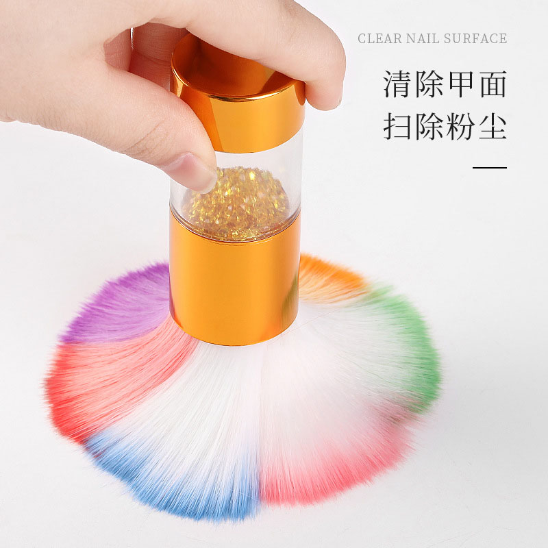 带水钻金属手柄花瓣型彩虹清洁刷灰尘刷美甲刷