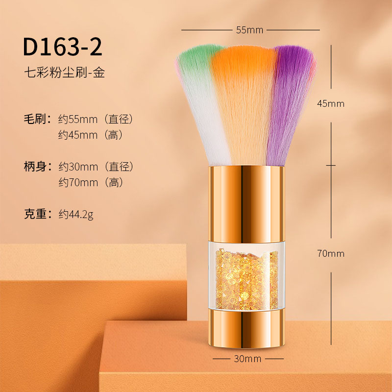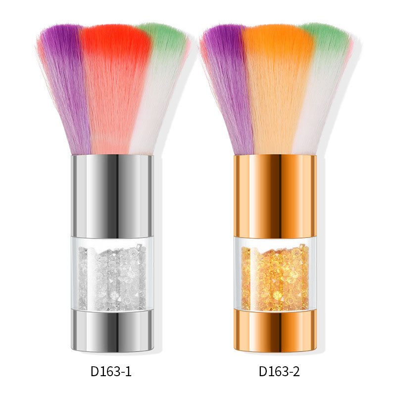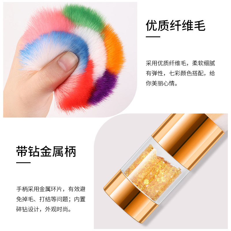 带水钻金属手柄花瓣型彩虹清洁刷灰尘刷美甲刷