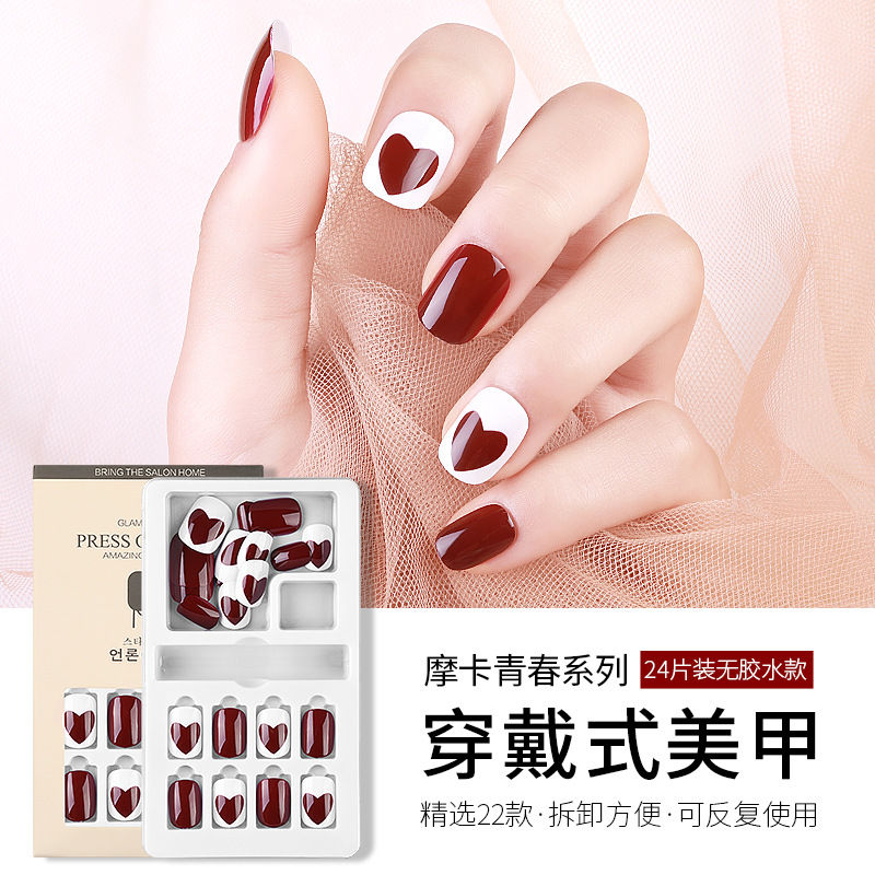 短款温精灵平底碎钻款彩绘穿戴假指甲贴片